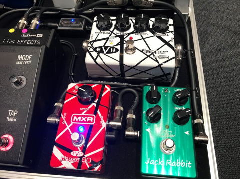 PreEffects用としてHX Effectsの前段にSuhr Jack Rabbit、MXR EVH90、EVH 117を接続しております。ご依頼者様の拘りで、モジュレーション系エフェクターはあえてアナログのコンパクトエフェクターを採用。EVHシリーズは発売から結構経ちますが今でも人気の衰え知らず★